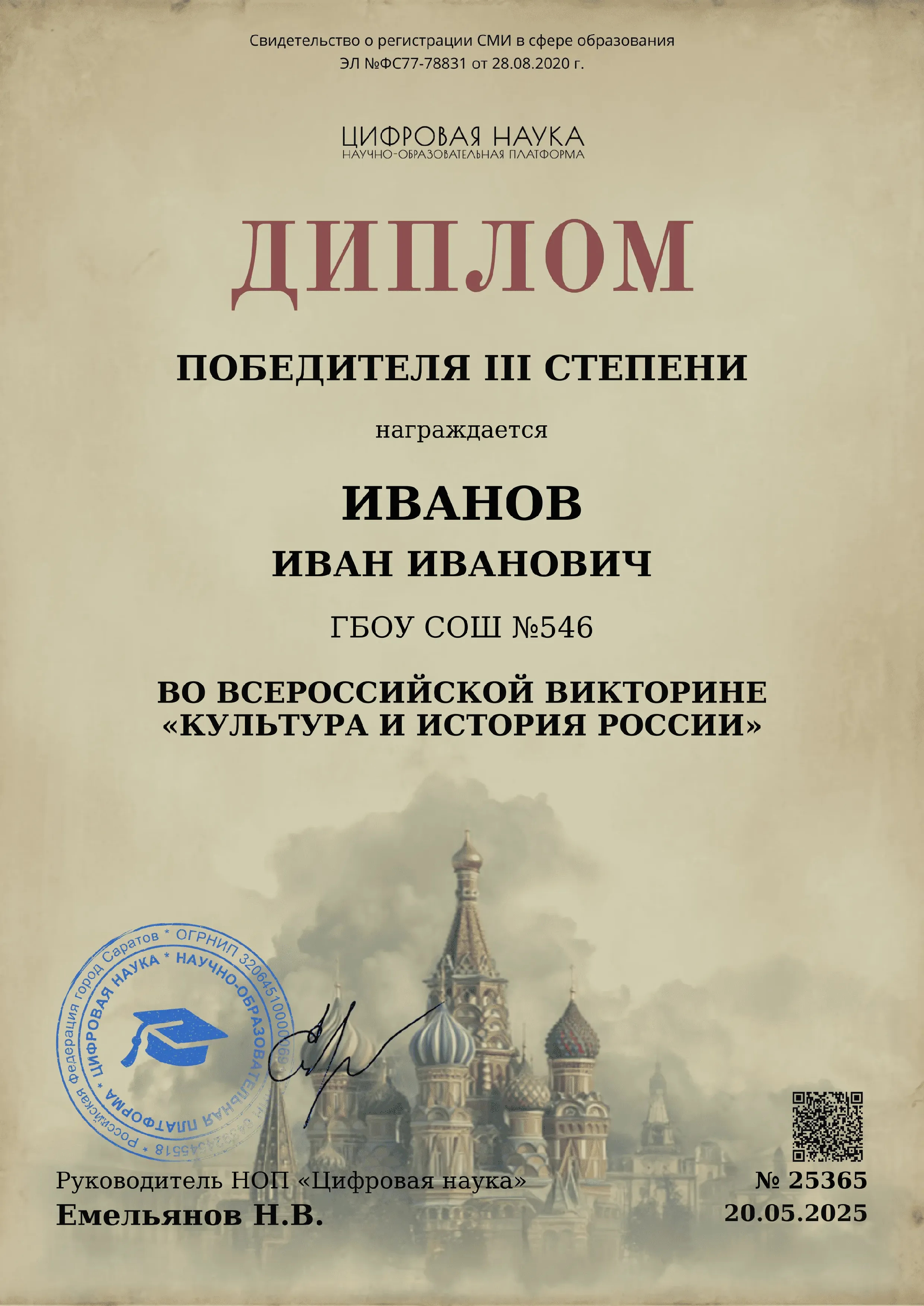Все участники после прохождения теста получают сертификат или диплом.