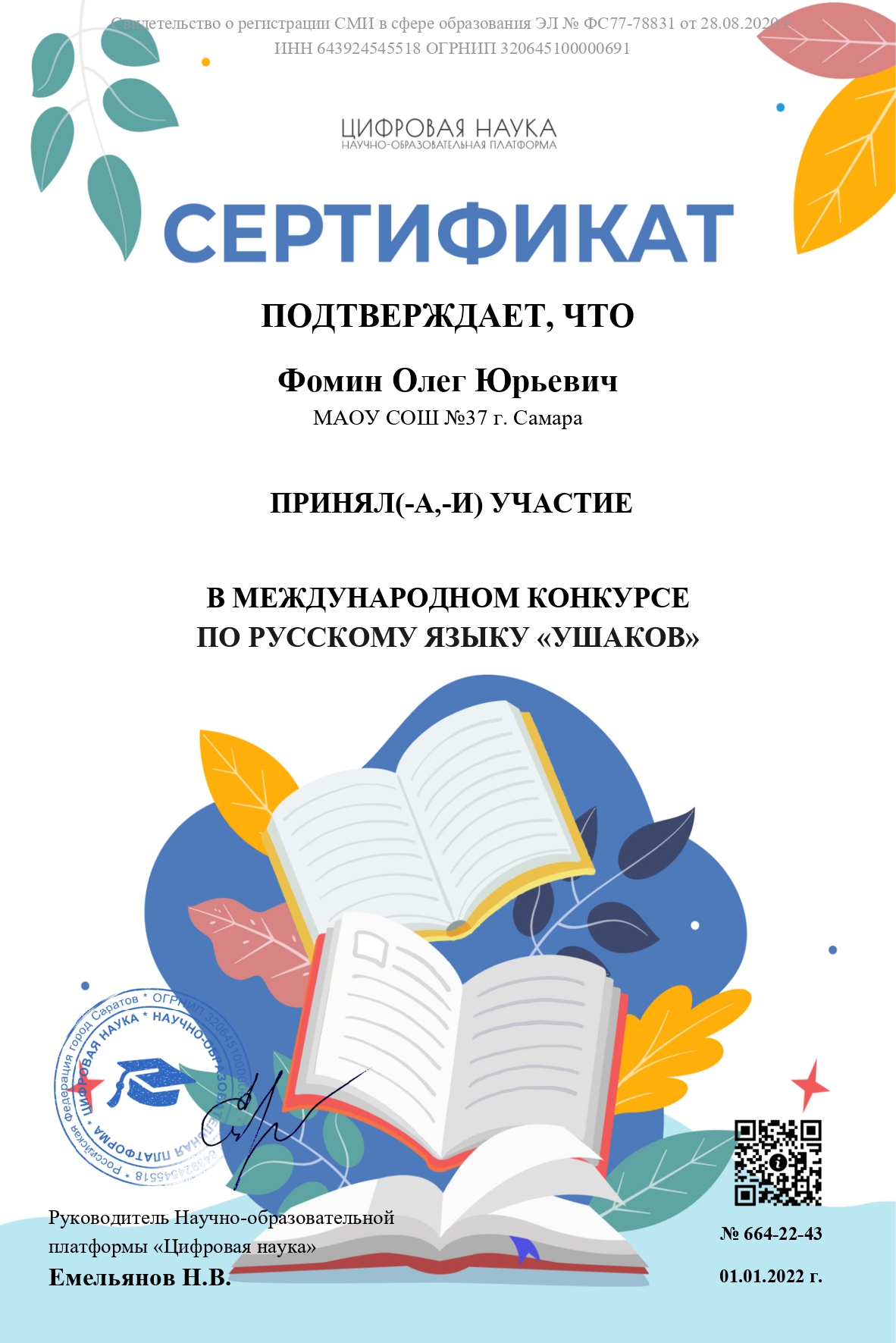 Сведения о регистрации СМИ Эл № ФС 77 - 78831 от 28.08.2020