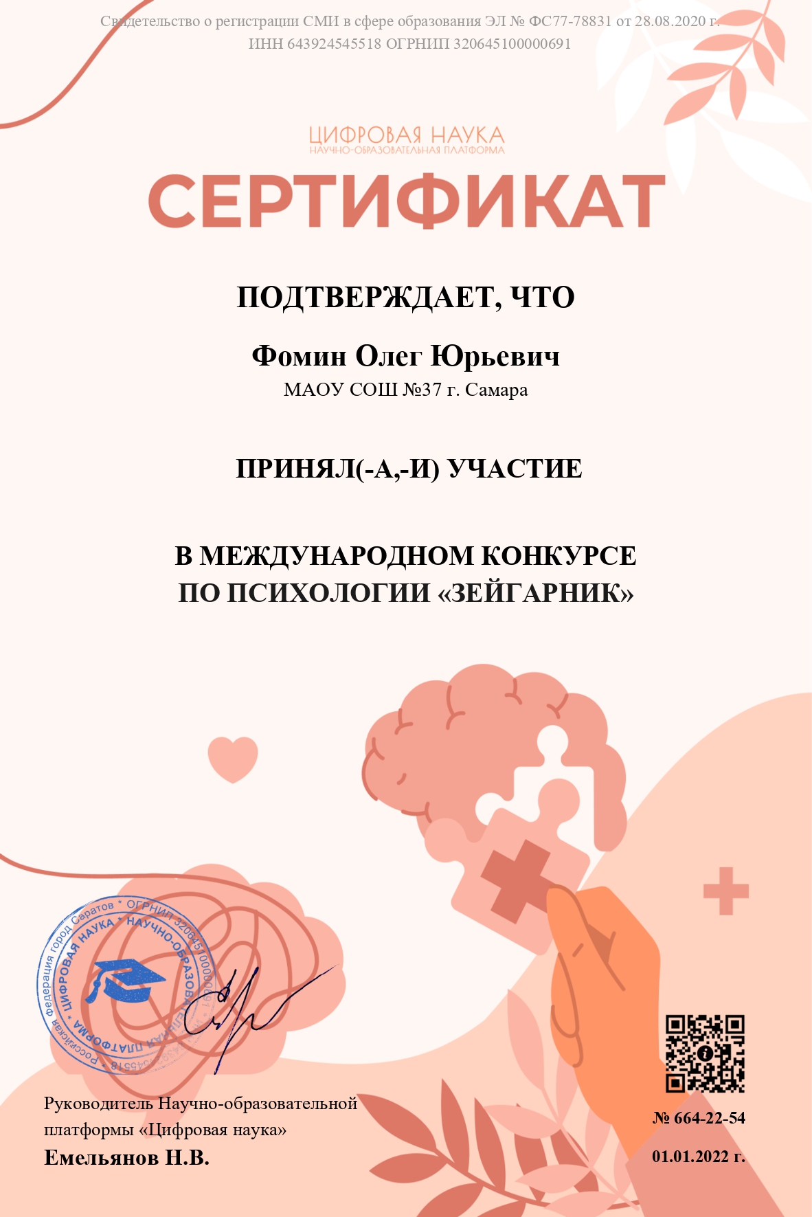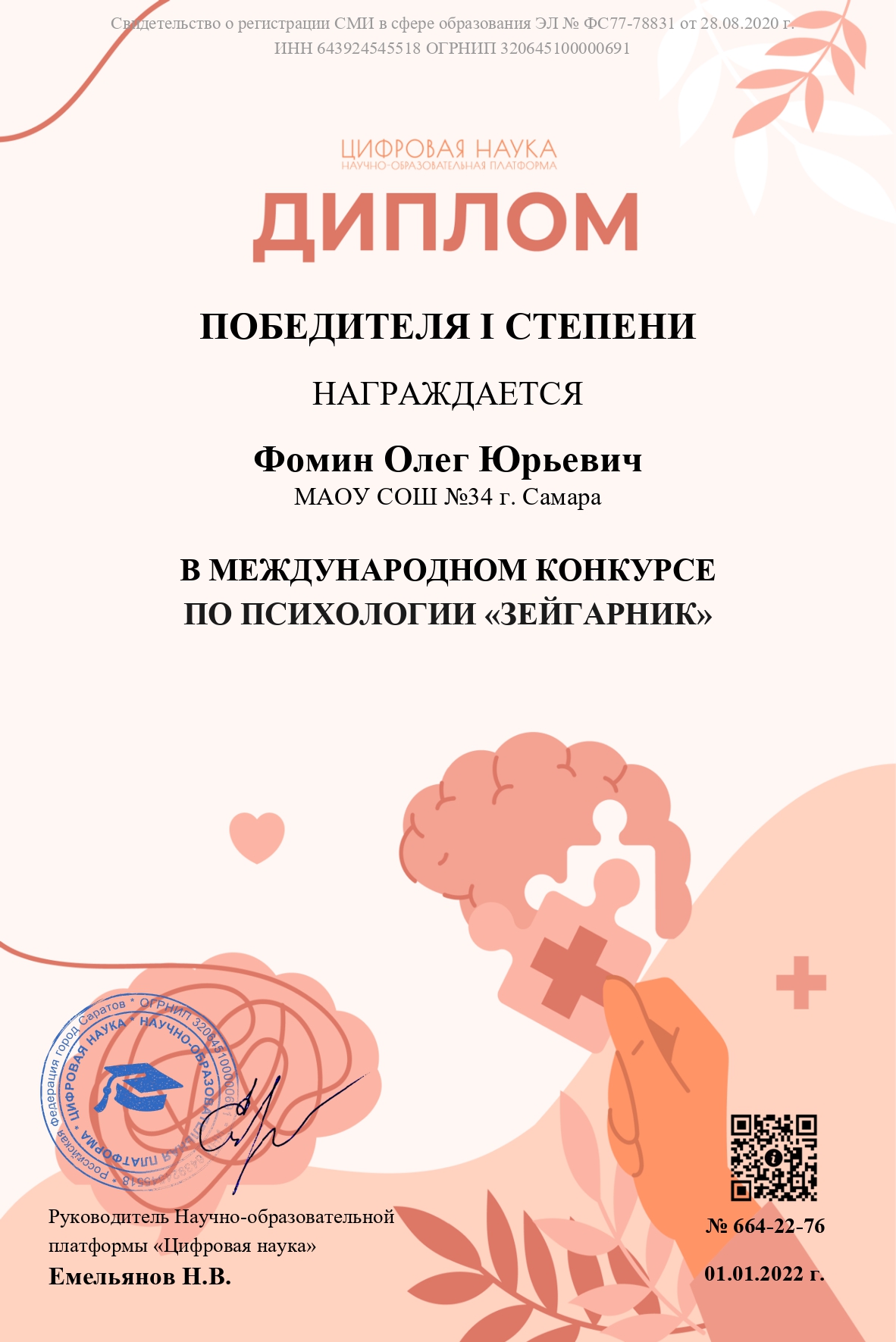 Сведения о регистрации СМИ Эл № ФС 77 - 78831 от 28.08.2020